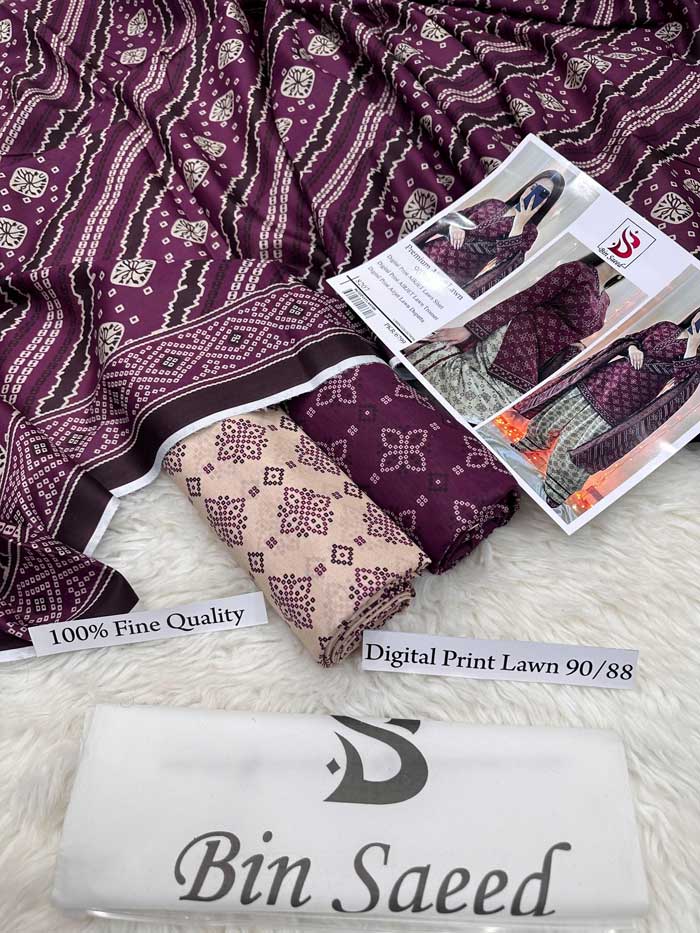 Bin Saeed Luxury Digital Print Airjet Lawn 90/88 Volume | 3PCS Unstitched Suit Summer 2026 | 3PCS Unstitched Suit Summer 2026 (Code: SS-BS-ADP01-9021)