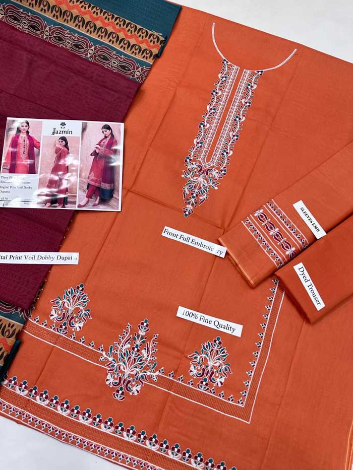 Bring effortless charm to your seasonal wardrobe with the Summer 2026 Collection by Jazmin – Code 4629, now available at sarastore.pk with premium quality in low budget. This stylish 03PCS unstitched lawn suit is tailored for women who want breathable comfort with elegant embroidery for Pakistan’s summer days.