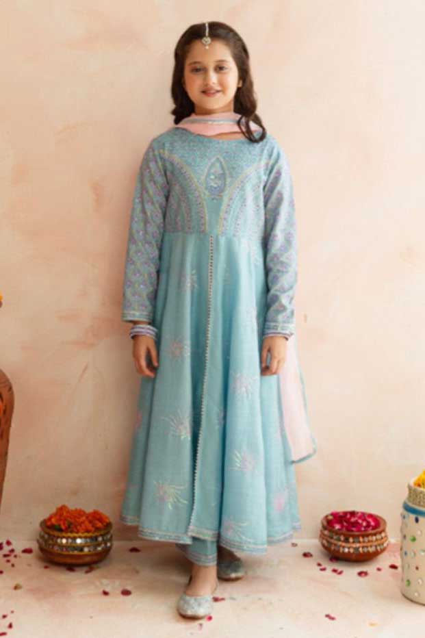 This outfit is crafted to keep kids relaxed all day long. The premium lawn fabric allows proper airflow, while the delicate embroidery adds a graceful touch without making the dress heavy. The net dupatta completes the look, giving it a festive yet lightweight feel that is perfect for Eid, family gatherings, and summer occasions.