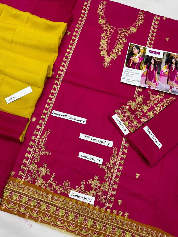 Crafted with premium quality lawn fabric, this suit ensures maximum breathability and comfort during the hot summer season of Pakistan. Whether you’re heading to a casual gathering, festive event, or daily wear, this outfit gives you a graceful and stylish look without compromising comfort.