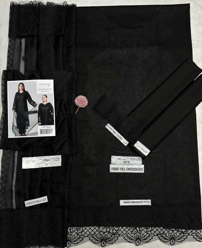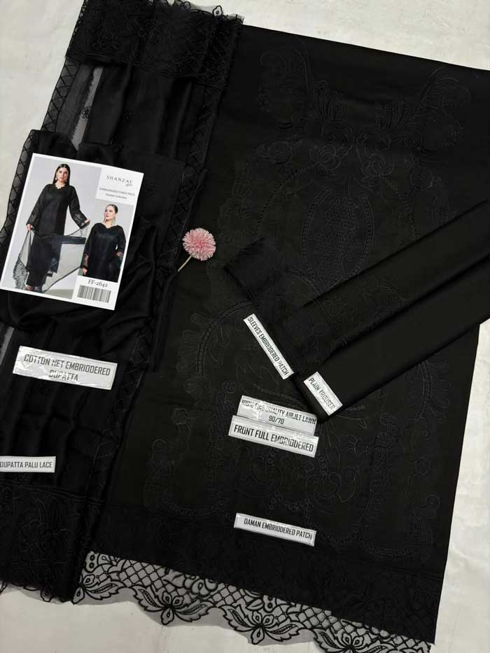 Order the Shanzay Black Airjet Lawn 90/70 Embroidered Suit – Code SS-SZ-CND-9031 today from sarastore.pk and enjoy the cheapest price in Pakistan, lowest price in Pakistan, best sale, and premium quality in low budget. Don’t miss the biggest sale in Pakistan 2026 — shop now and upgrade your wardrobe! 🖤✨