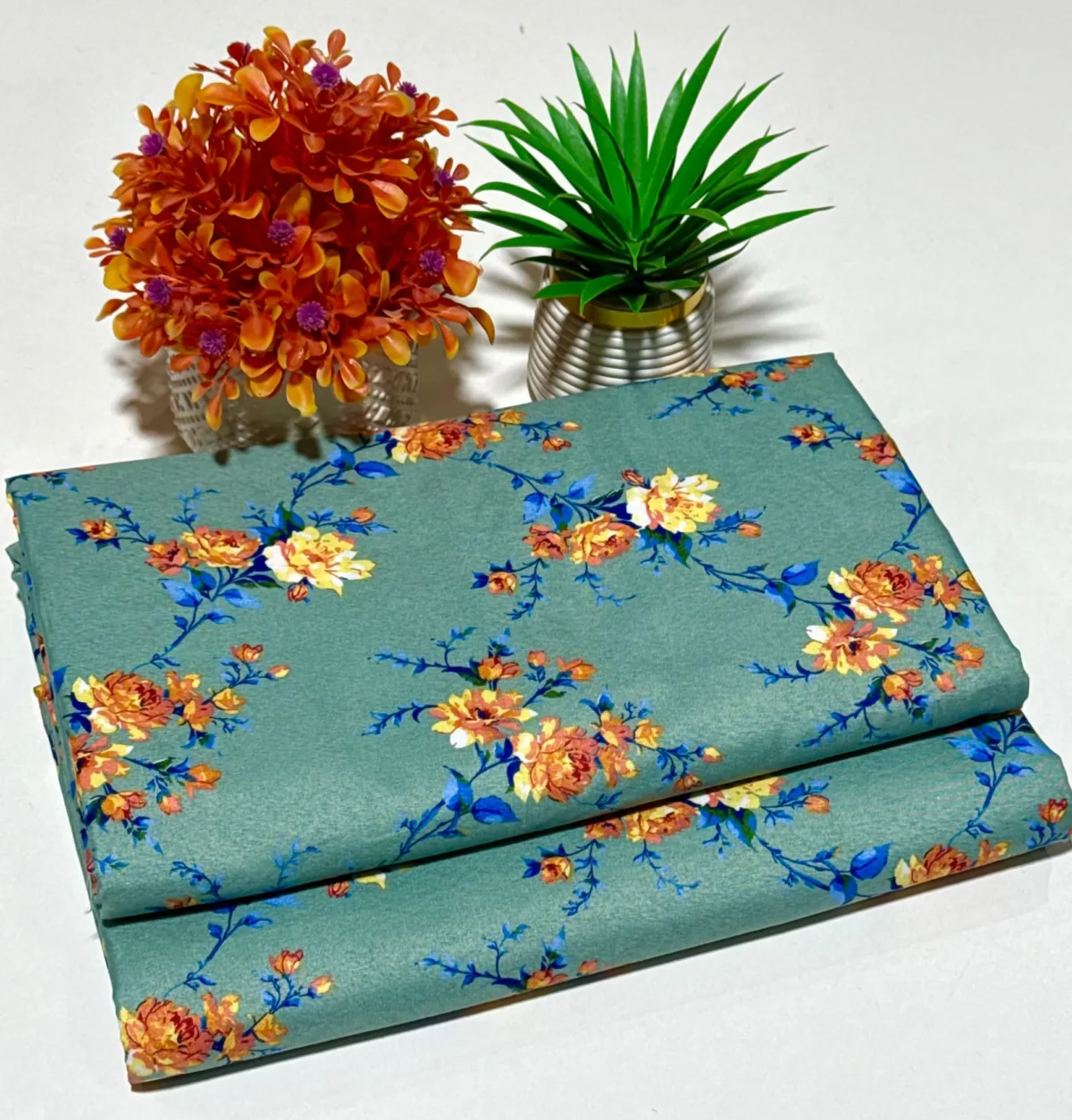 • Shirt: Unstitched digital printed shirt with allover floral design