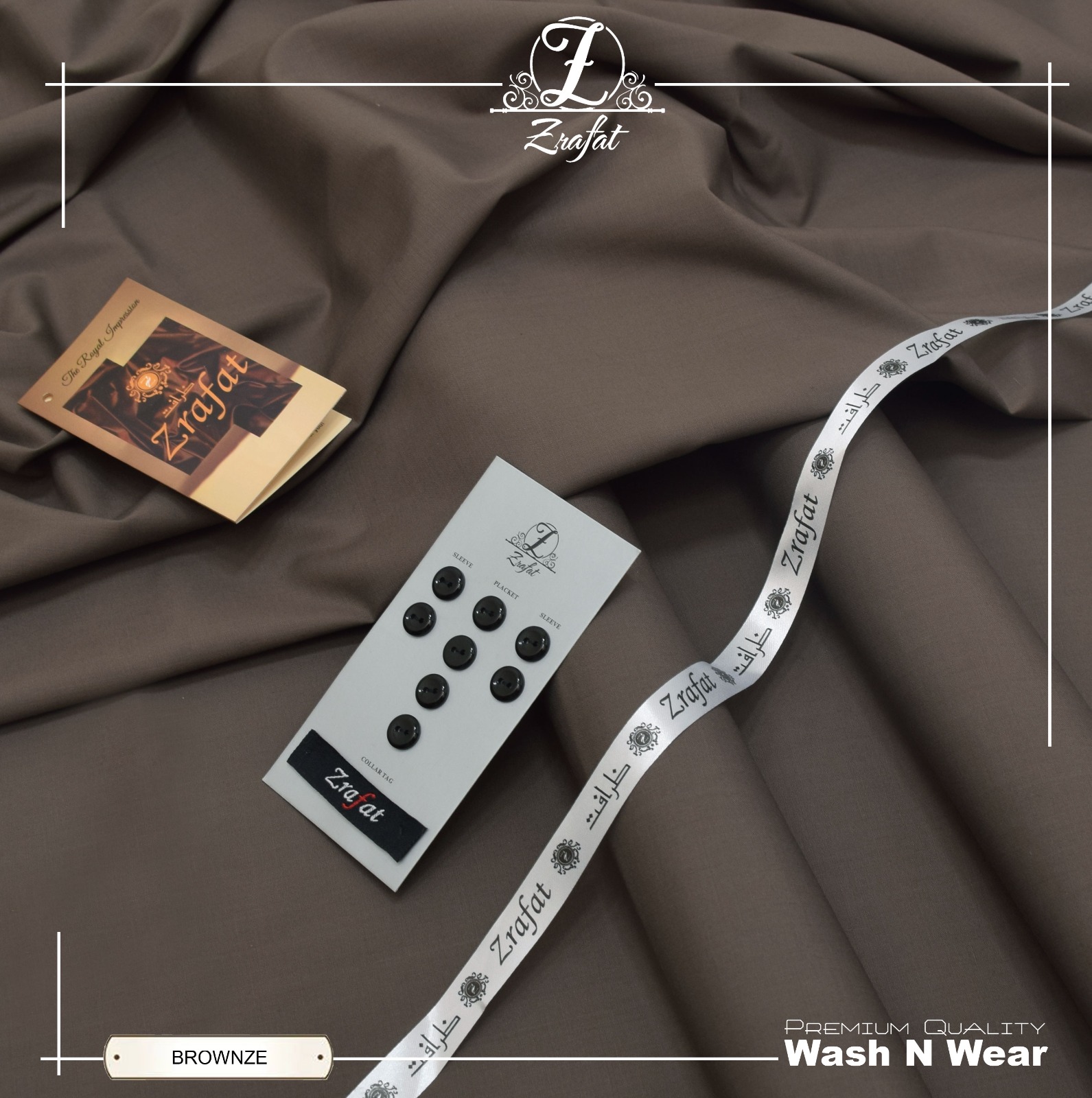 The Zrafat Bronze Wash & Wear fabric is produced using premium fibers selected for strength and comfort. The wash & wear composition ensures the fabric remains crisp throughout the day while requiring minimal maintenance. It resists wrinkles, maintains structure, and retains its original color even after repeated washes.
