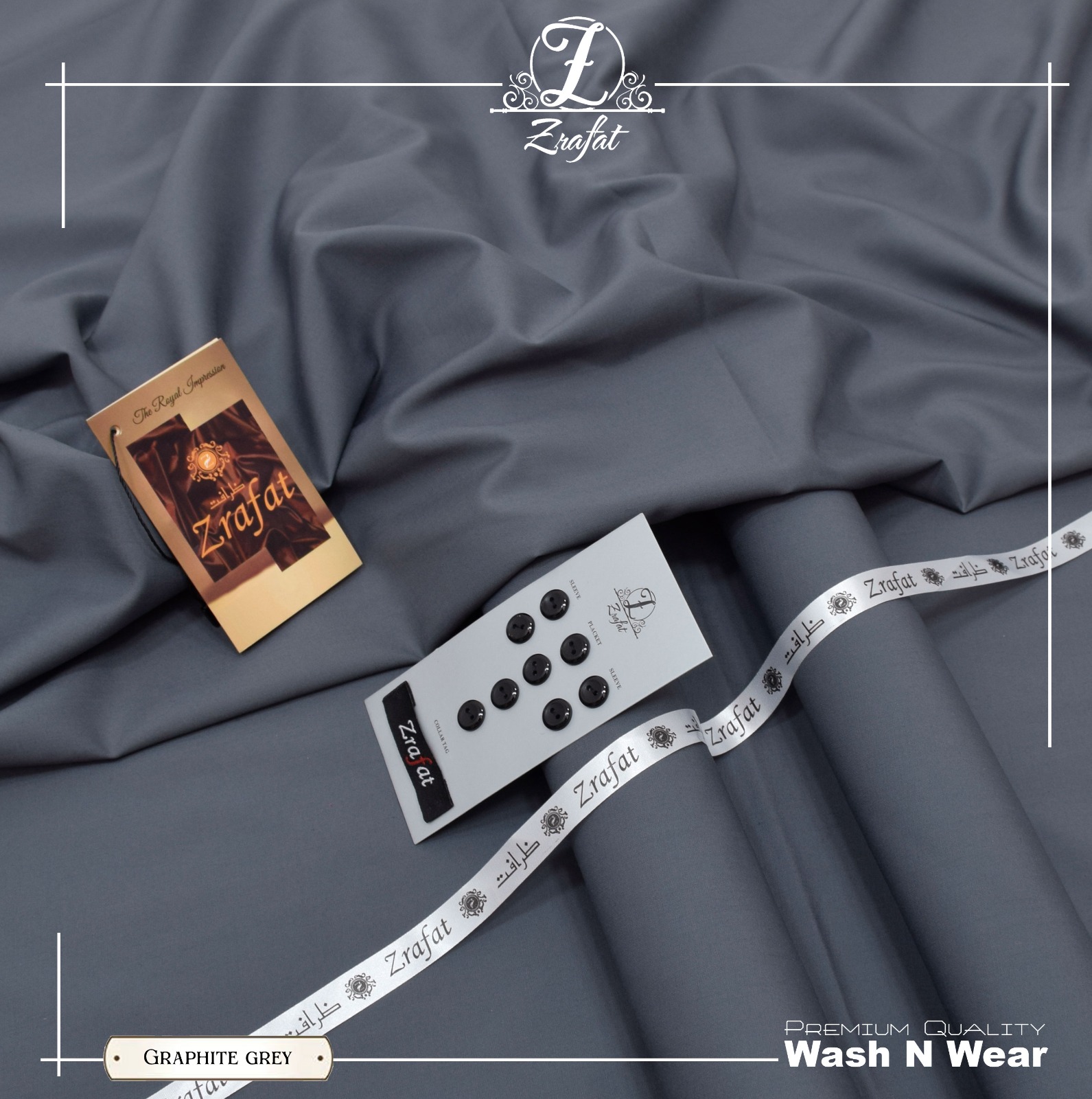 🩶 Zrafat Graphite Gray Urban Edge Wash & Wear Men’s Unstitched Suit – 2026 Collection is designed for men who live in the modern world, make confident decisions, and prefer sharp simplicity over loud fashion. Graphite Gray is a contemporary shade that sits between charcoal and steel tones, representing professionalism, balance, and urban maturity. This color is not about tradition alone — it reflects modern Pakistani men who operate in corporate, business, and smart-casual environments.
