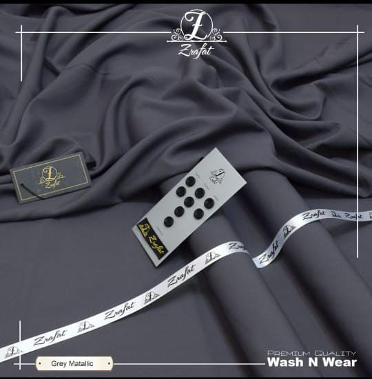 Zrafat Gray Metallic Wash & Wear fabric is engineered to balance innovation and comfort. The wash & wear technology ensures low maintenance while the metallic undertone enhances depth without creating shine. Unlike glossy fabrics, this metallic effect is understated, maintaining dignity and wearability.